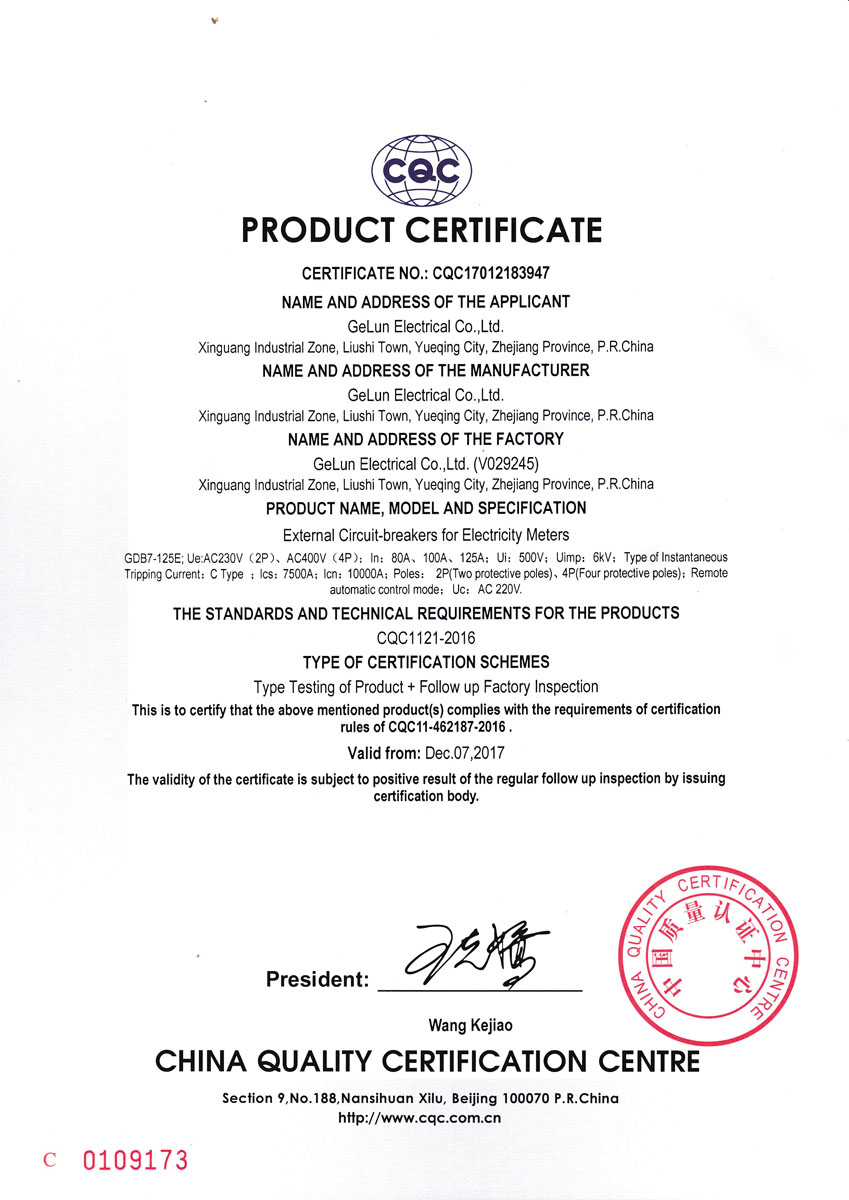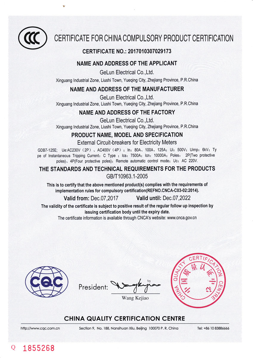 GDB7N-100E/ GDB7-125E external miniature circuit breaker for electricity meter, used for information collection system management, based on the balance of the user's electricity account, the circuit breaker is controlled by the prepaid electric energy meter. It is used in overload or short circuit protection of the lighting, distribution line and equipment under the circumstance of the rated insulation voltage of the circuit breaker is 500V, the rated working voltage is AC230V/400V, the remote automatic control voltage is AC230V, and the rated current is up to 125A.