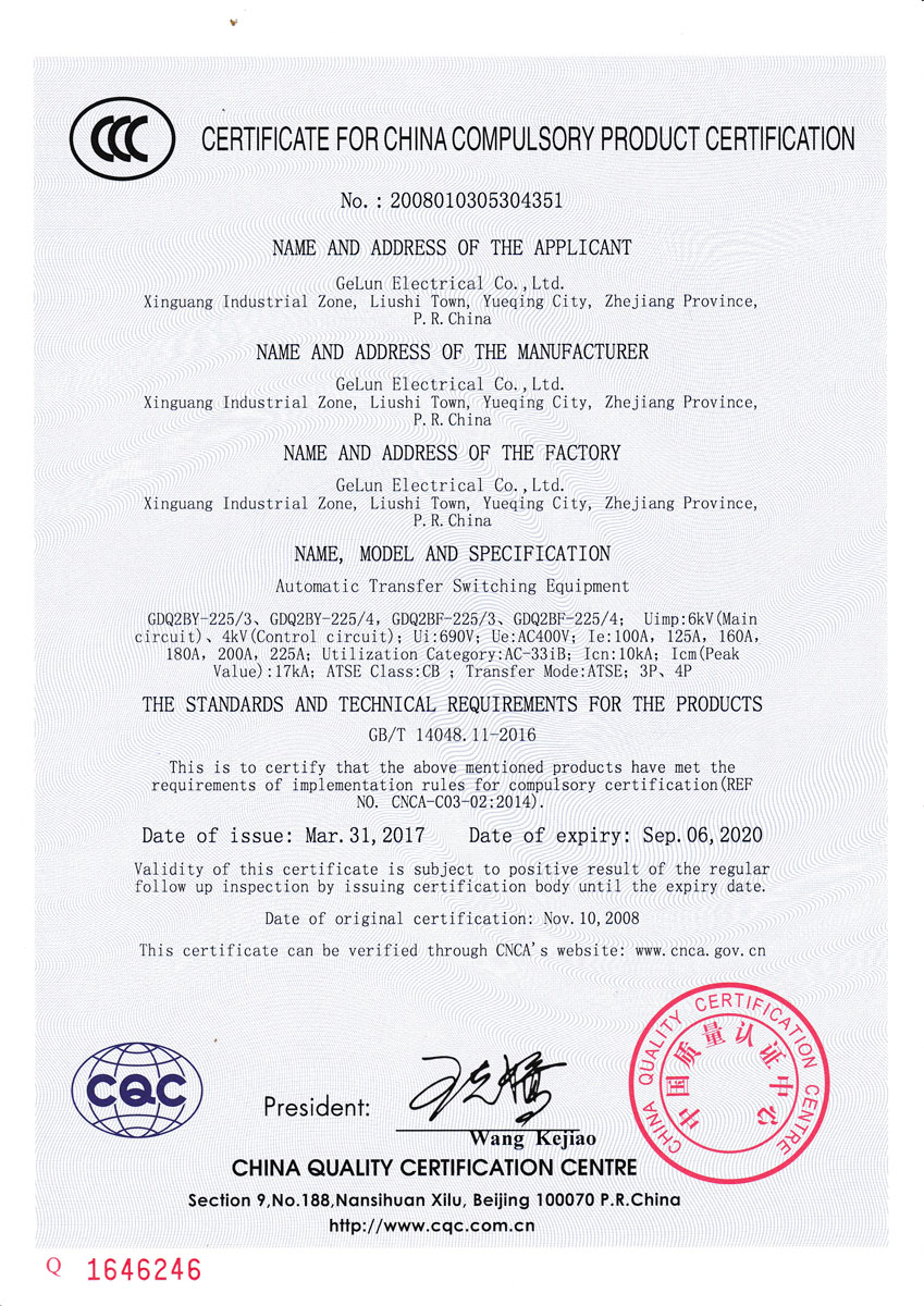 GDQ2B series dual power automatic transfer switch is CB grade, suitable for AC 50Hz / 60Hz, rated working voltage 230/400V, rated current up to 225A applied in dual power supply system. In the case of common power failure, the switch can engage with standby power or switching to the power-generation machine to ensure the reliability and safety of the power supply. The product has a flame-fighting interface, which can be easily linked with the flame-fighting equipment, and the switch is remotely controlled to cut off the power. The Flame-fighting product is equipped with generator interface. This series of products are divided into one-piece or split-piece types.