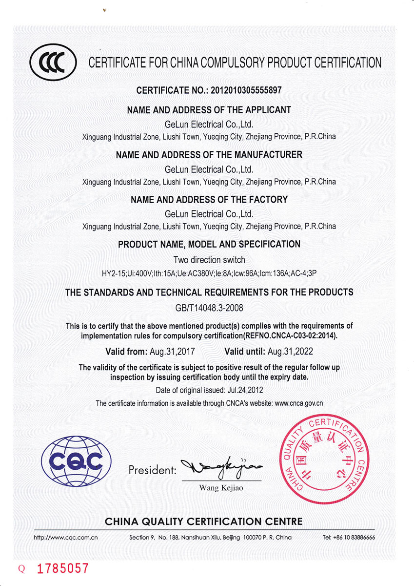 HY2 series reverse switch is mainly used in AC 50Hz or 60Hz, rated working voltage up to 380V, rated working current up to 21A. It is mainly used for direct switching of a single squirrel cage induction motor to start, run, stop and reverse.