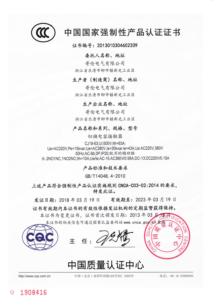 CJ19系列切換電容器接觸器主要用于交流50Hz或60Hz,額定工作電壓至380V,額定功率至50kvar的電力系統(tǒng)中,接通和分?jǐn)嗖⒙?lián)電容器,以作為改善功率因數(shù)之用。
