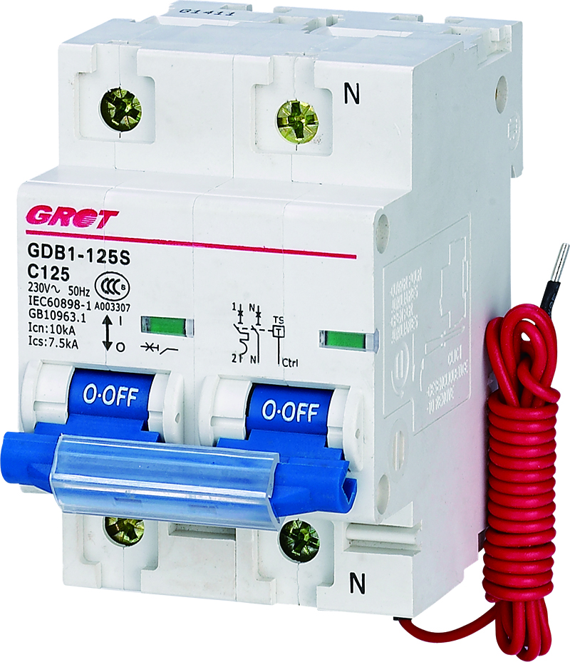 GDB1-□S系列預付費電能表專用斷路器具有控制信號欠壓延時分勵脫扣功能,適用于交流50Hz(60Hz),額定工作電壓1P+N/230V,3P+N/400V,其額定電流至125A的線路中,對線路進行遠距離控制分斷或自動信號控制分斷,同時對線路起過載和短路保護的作用。廣泛應用于國家電網(wǎng)一戶一表改造工程與IC卡預付費電能表配用外置專用斷路器,防止未付費用電,斷路器的保護特性為C型特性。
