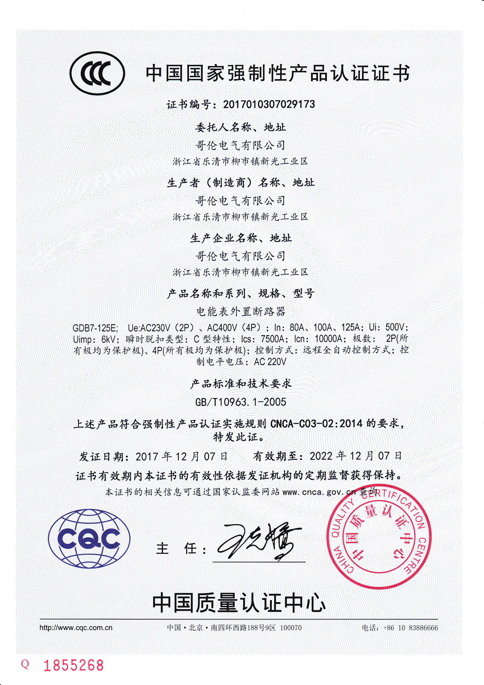 產(chǎn)品符合IEC60898-1、GB/T 10963.1標準。