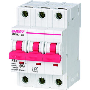 GDB7-63小型斷路器(以下簡稱斷路器),主要用于交流50Hz/60Hz,額定工作電壓至400V,額定電流至63A及以下的配電線路中,作過載和短路保護(hù),亦可作為線路不頻繁通斷操作與照明線路之用。
