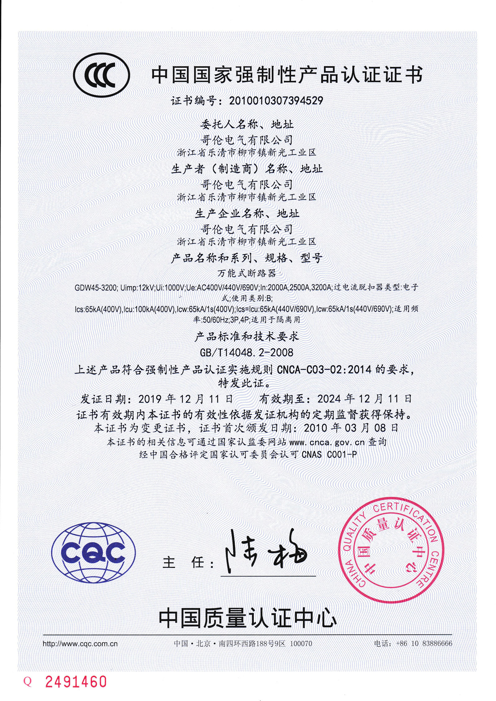 3、額定電流In:630、800、1000、1250、1600、2000、2500、3200、4000、5000、6300A
